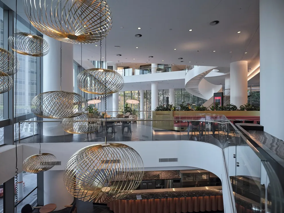 Quay Quarter Tower features a striking design comprising five shifting glass "vertical villages" stacked on each other and punctuated by atrium space. It offers expansive views of sydney Harbiur and brings natural light into every corner of the building.