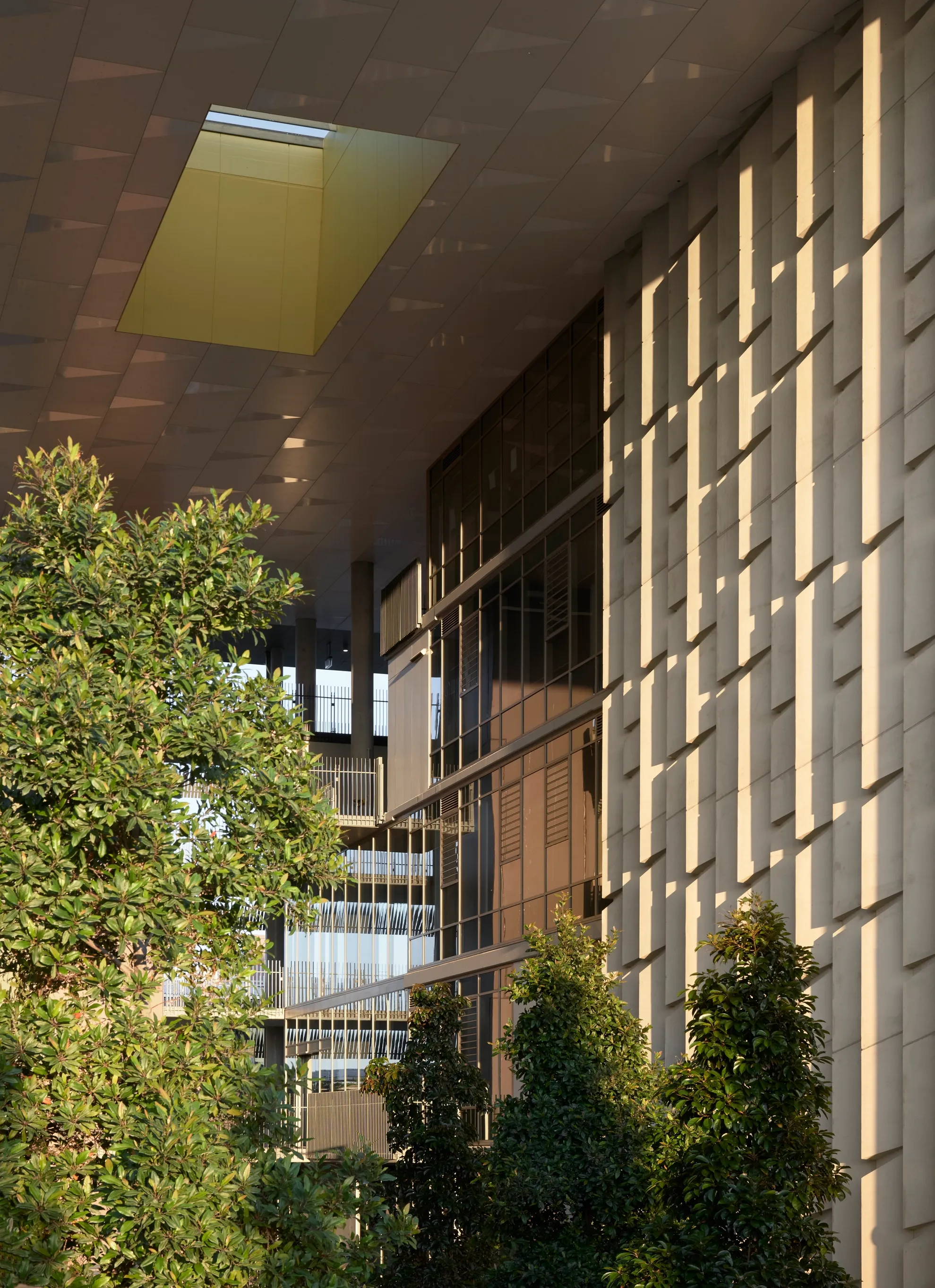 Understanding the Indigenous Dutton Park habitat was a key aspect to the holistic nature of the design. The architectural language is derived from the Indigenous heritage of the site as a place of making, expressing the craft of net weaving and tool carving within the metalwork and concrete tectonics.
