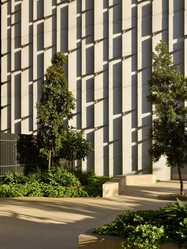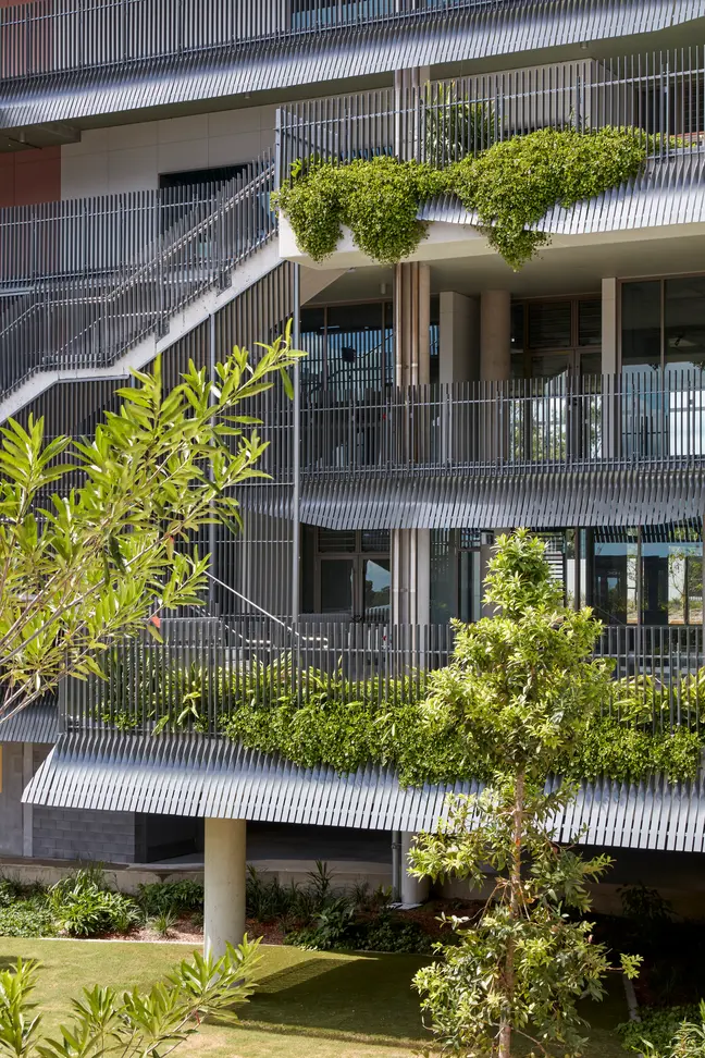Understanding the Indigenous Dutton Park habitat was a key aspect to the holistic nature of the design. The architectural language is derived from the Indigenous heritage of the site as a place of making, expressing the craft of net weaving and tool carving within the metalwork and concrete tectonics.