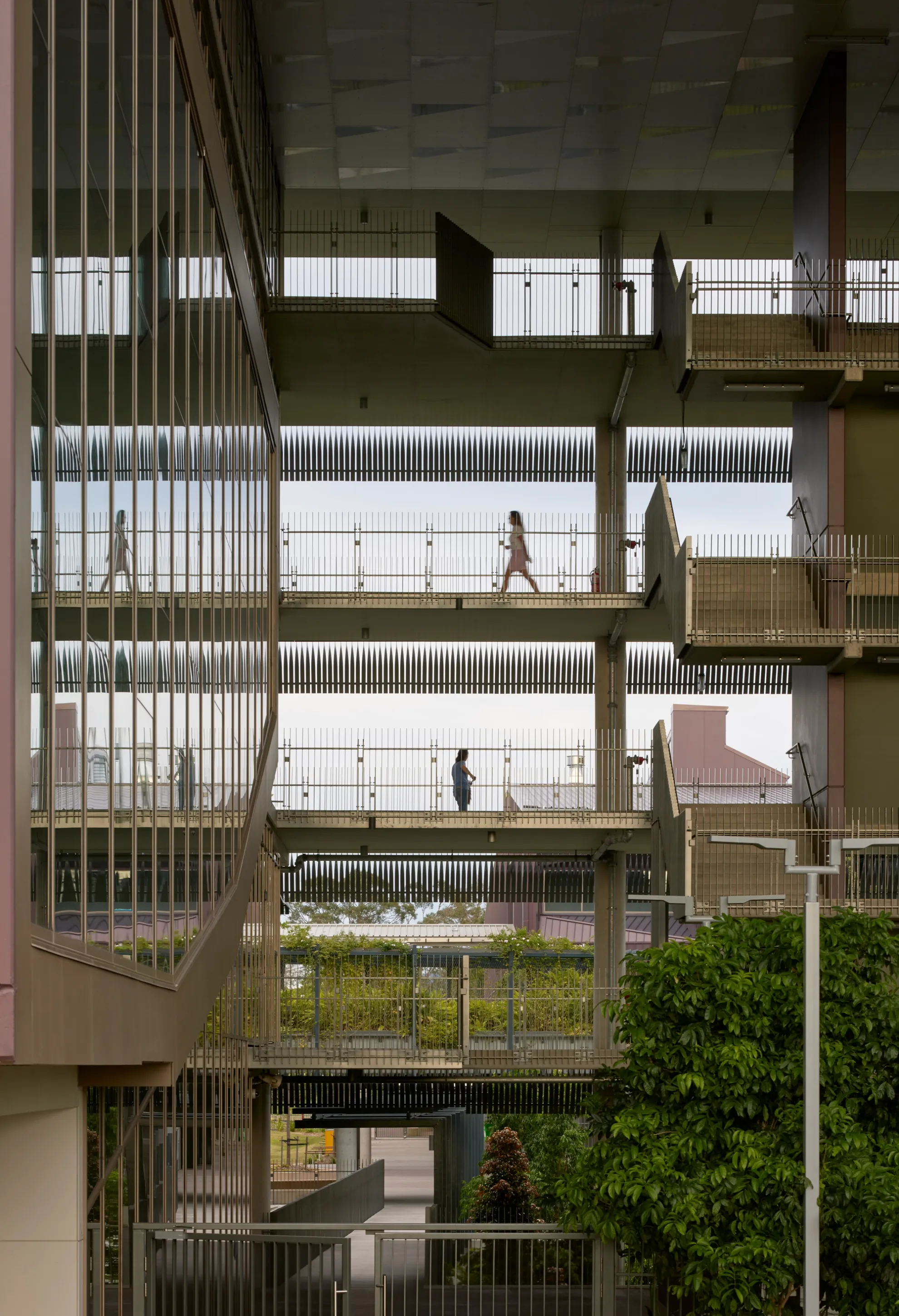 Students navigate the buildings 'vertical city streets' through galleries and up and down stairs.