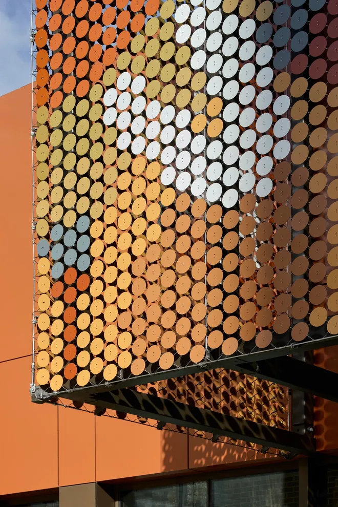 Site-specific artworks curated by Creative Road further enhance the public spaces in and around the building — locally based artists, including Hannah Quinlivan, Kate Vassallo and Musonga Mbogo celebrate Canberra, its surroundings and people, while the expansive works of Ngunnawal, Wiradjuri and Kamilaroi artist Lynnice Church and Ngunnawal artist Bradley Mapiva Brown honour First Nations culture and Country. Church’s artwork, ‘Journey of Healing, ’ crowns the new entry to the hospital building, which has 24,073 shimmering metal discs