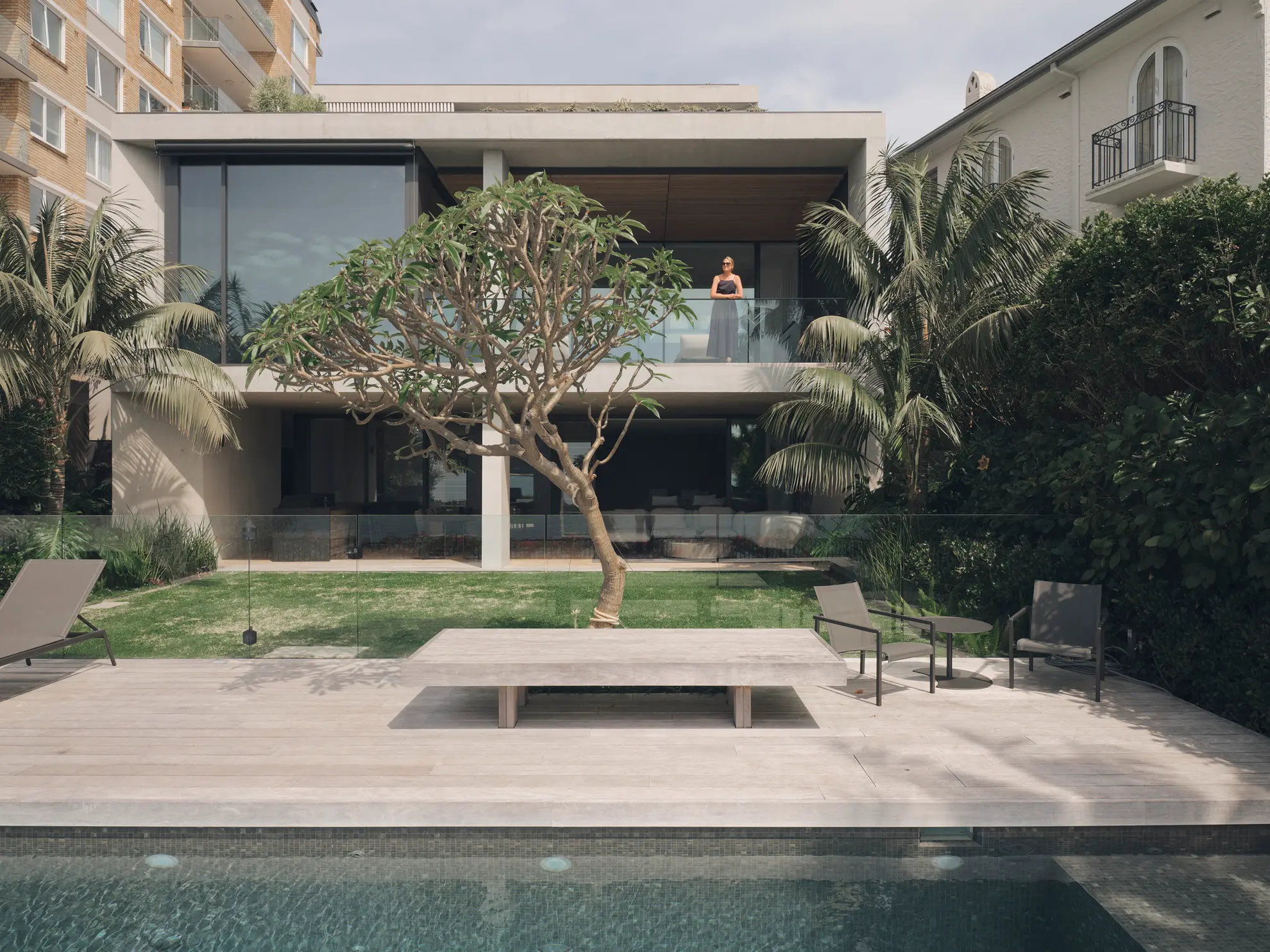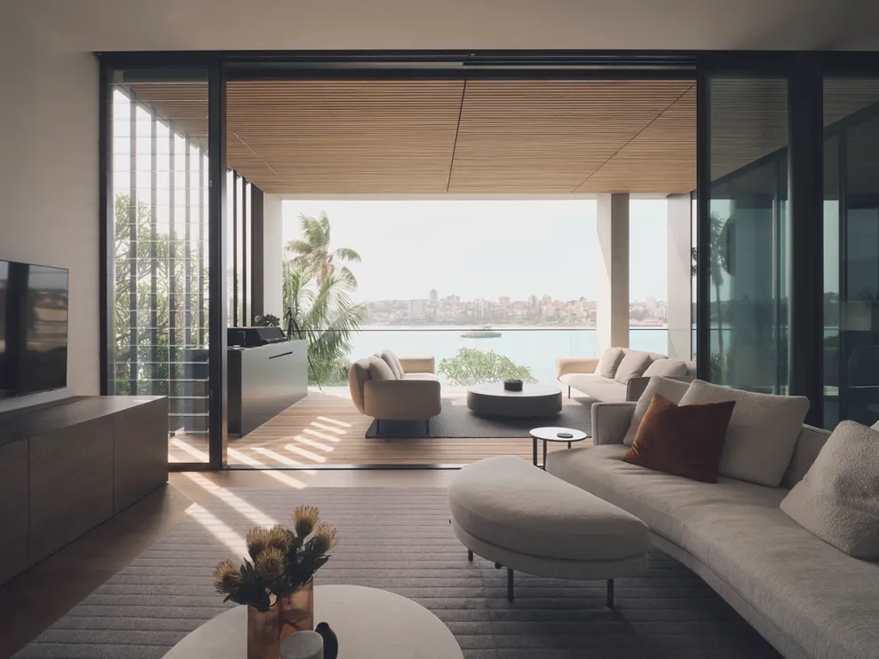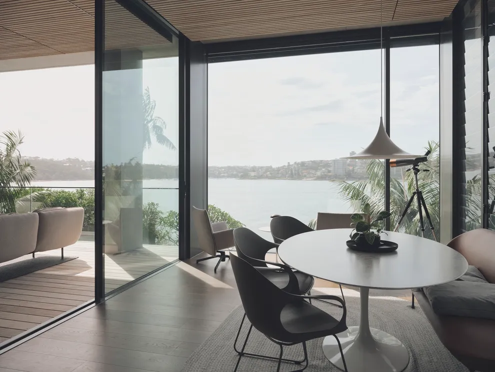 Full-height glazing and indoor-outdoor fluidity emphasise the expansive views, allowing inhabitants to witness the to-and-fro of the Manly Ferries and the captivating activity of harbour life.
