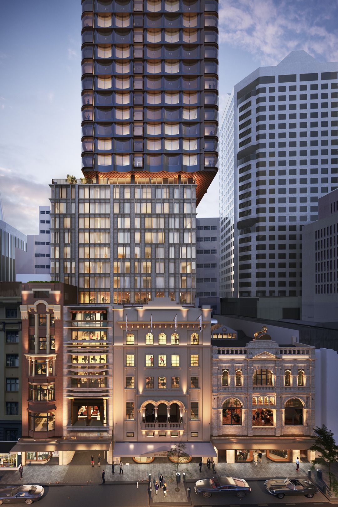 A seamless and unified façade wraps the old and new components of the building. Thermal properties create cooling effects that reduce reliance on air conditioning. Sunshades atop the tower reduce solar gain and avoid the need for blinds. The staggered repetitive façade framing reduces visual impact and prevents reflections that may impact drivers on the Sydney Harbour Bridge.