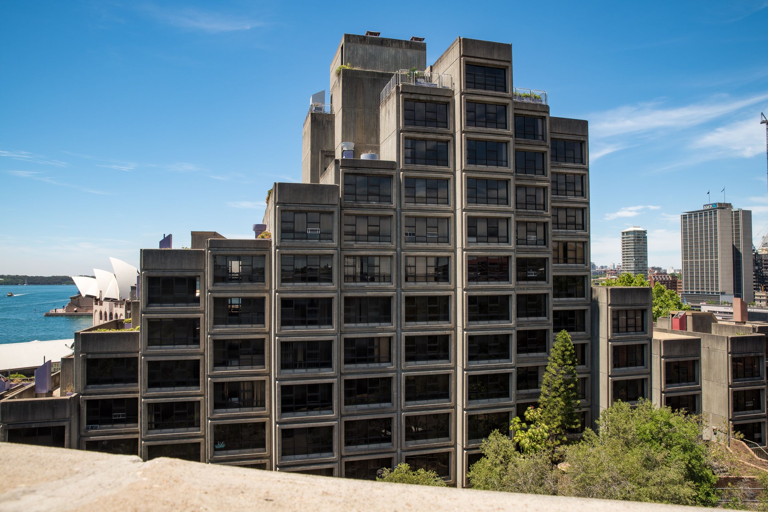The original social housing project was designed by Tao Gofers for the NSW Government Architect’s office in the late 1970s and overlooks The Rocks district of Sydney Harbour. It is one of few surviving examples of Brutalist architecture in Australia, a style renowned for bold geometry, expressed concrete construction and iconic stature.