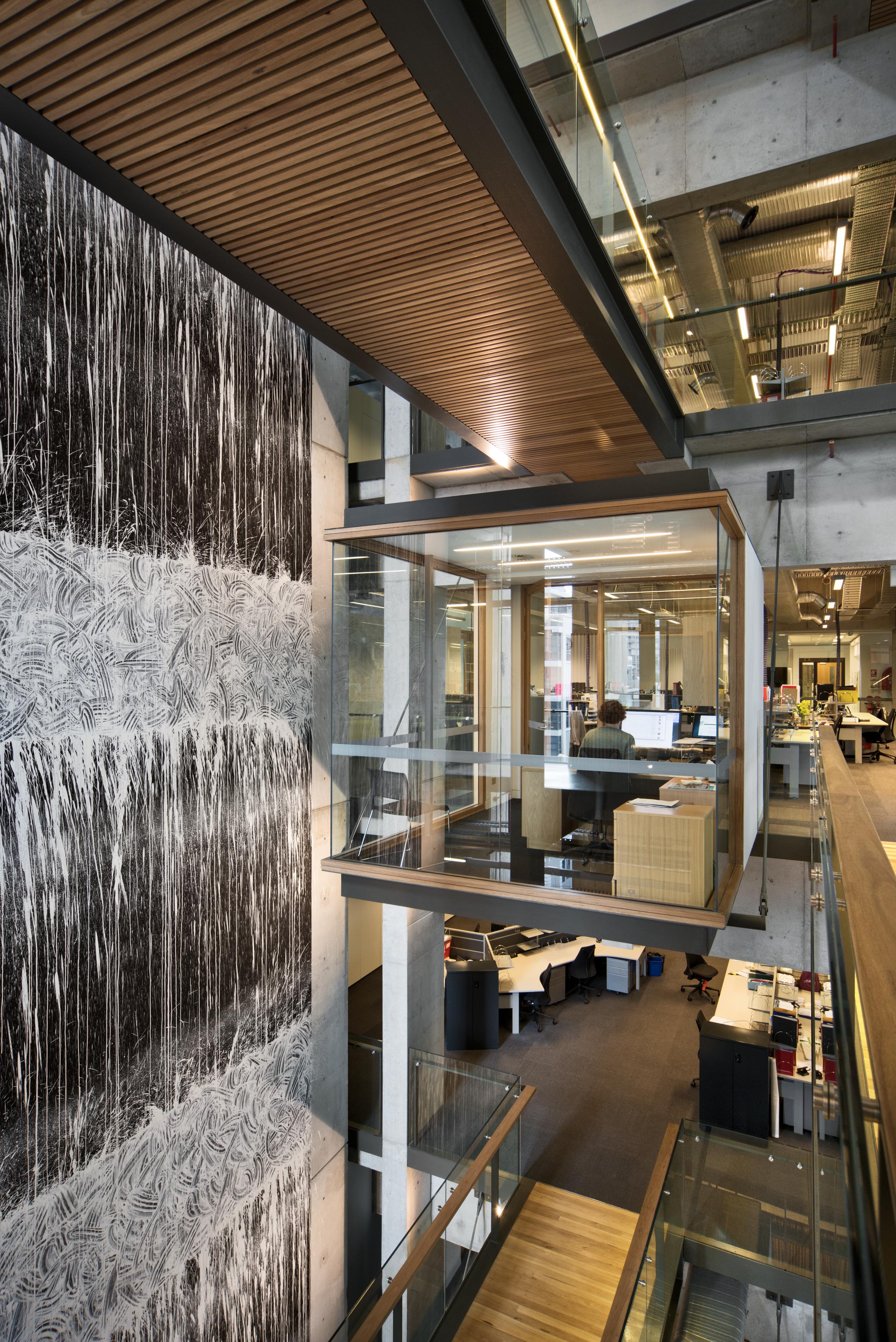 By organizing spaces into clear functional zones, BVN created a legible, flexible and efficient workplace. Working with the natural shape and orientation of the site, we optimized daylight in all spaces. We made sure that the small northern aspect was maximised to light the atrium and prominent meeting spaces.