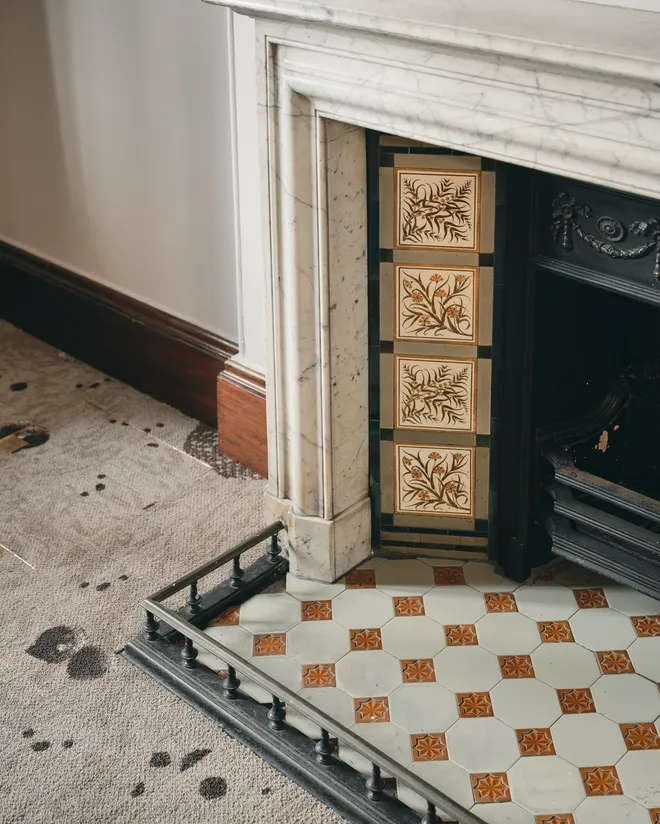 Upstairs, original rooms were refurbished and exquisite fireplaces