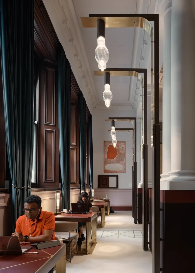 Upstairs, original rooms encircling the dome over two floors serve as creative suites to support group study, meetings and break-out rooms for postgraduate students within the schools of architecture and business.