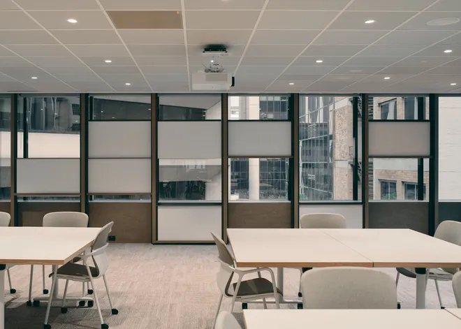 Next door, the larger floorplates of the annex deliver adaptable learning suites with flexibility built-in to enable event and networking in multiple configurations. New insertions include bespoke, retractable whiteboards