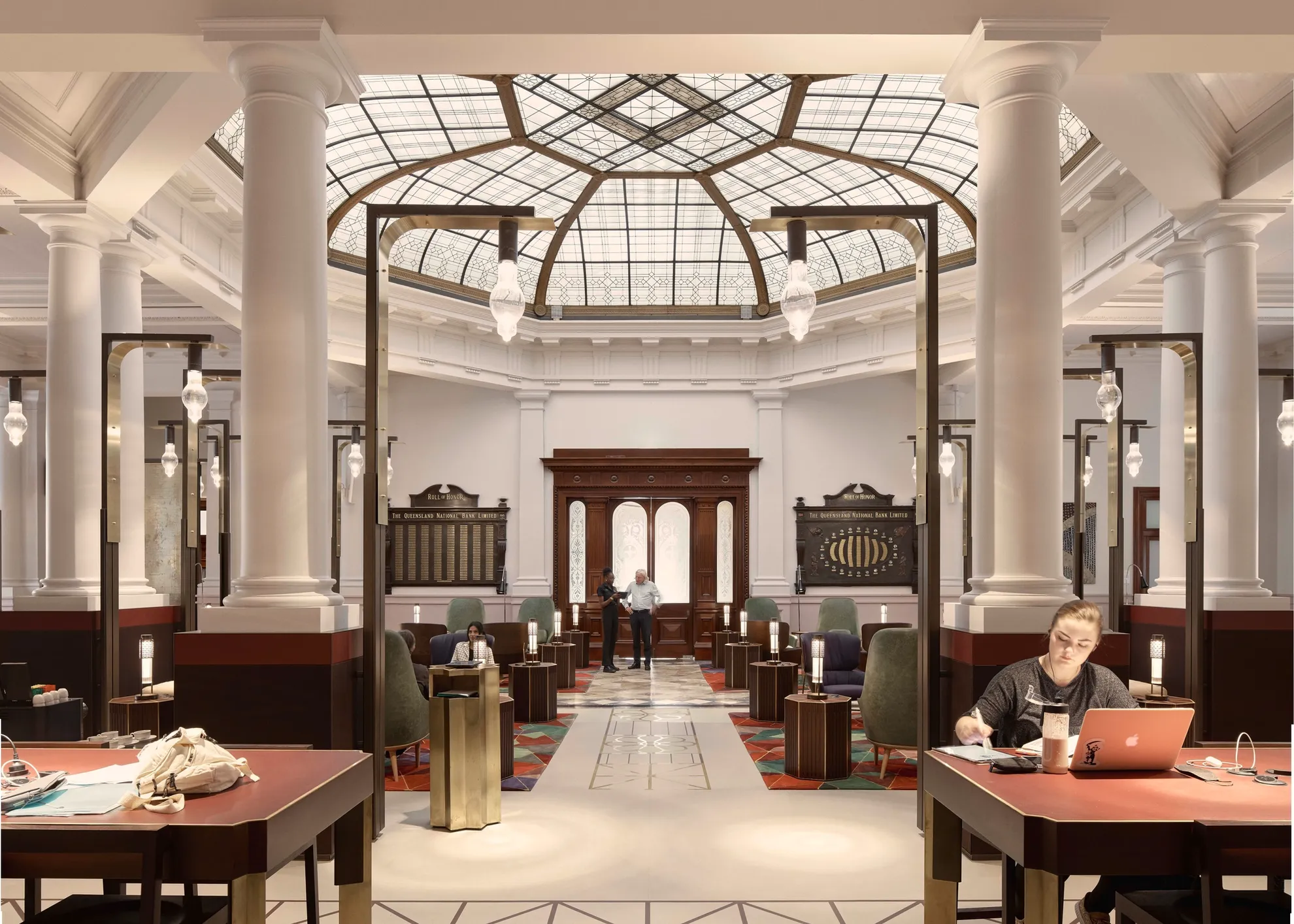 UQ engaged BVN to reimagine the building, which has two distinct architectural pedigrees—the grand, historic banking chambers and the flexible, modern floors of the annex—into spaces for learning, collaboration and engagement. UQ Brisbane City now gathers students, alumni, and industry professionals in a new forum of exchange.