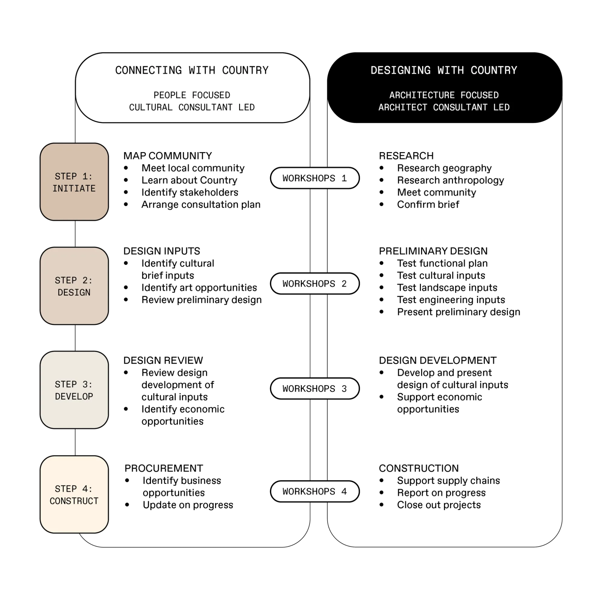 Our approach to Designing with Country is grounded in an understanding that there are many layers of influence that can affect the outcome of a project.