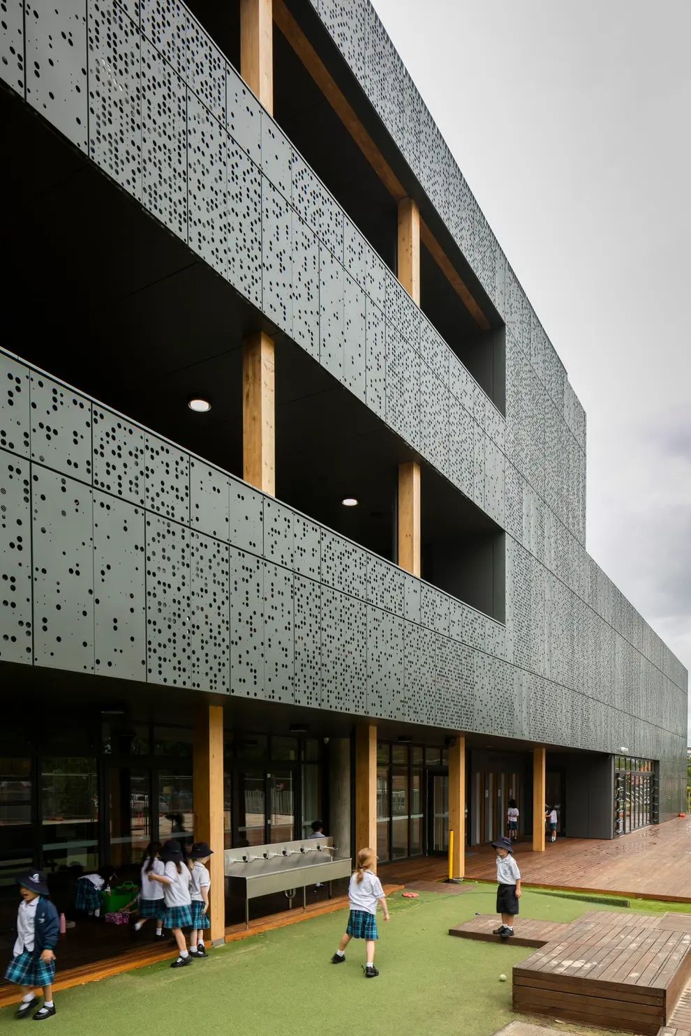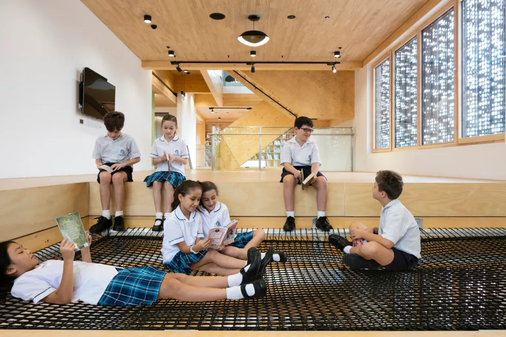 Our Lady of the Assumption Primary School reuses a 1970 3-storey, former Telstra training centre. The building, a typical institutional example of the brutalist concrete architecture of its time, presented many challenges in turning it into an inspirational, educational space.